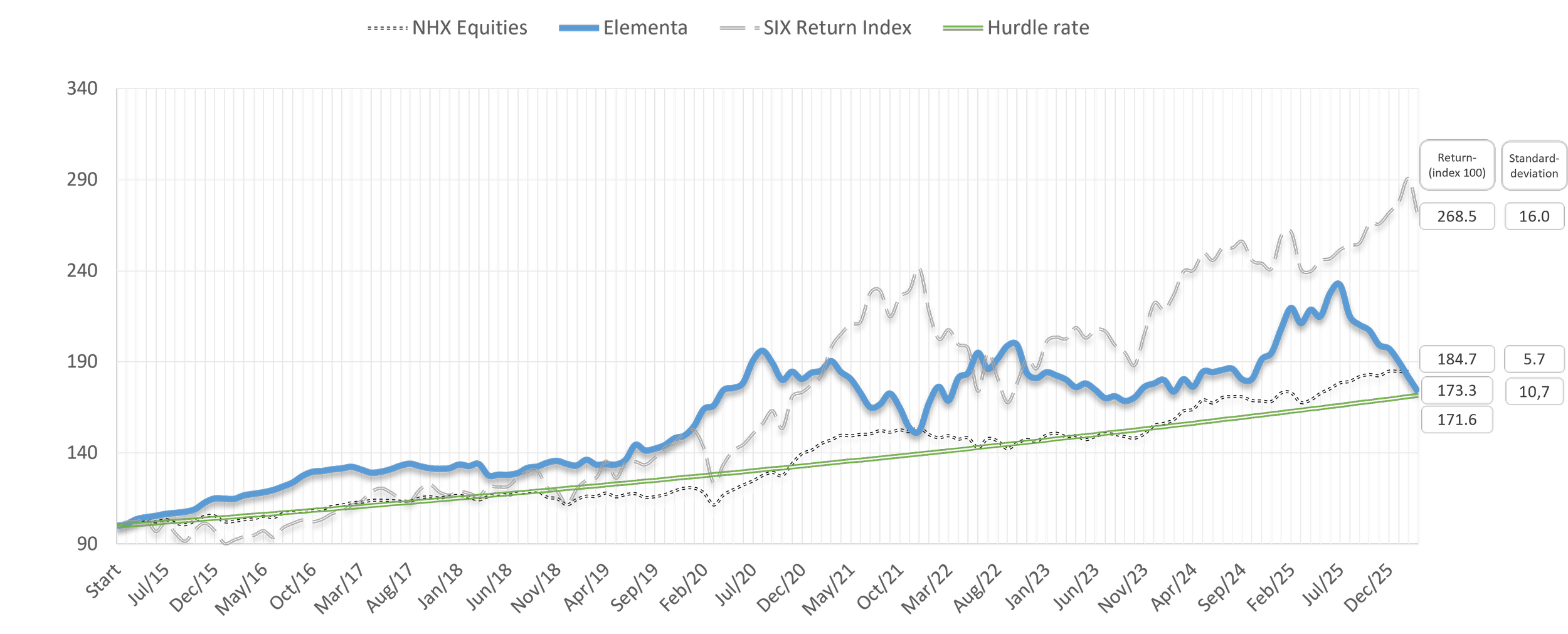 There are no guarantees that an investment in Elementa will be profitable. An investment in Elementa can both increase and decrease in value and there is no certainty that such investment will be recovered in full. Past performance is not a reliable indicator of future returns. An investment in Elementa is to be considered as a long-term investment.